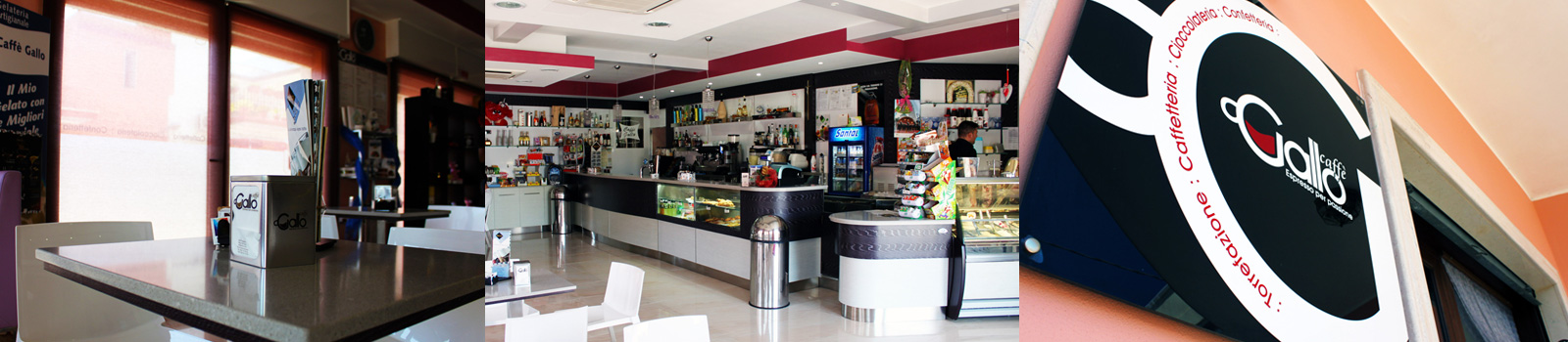 I signori Gallo, guidati dalla spropositata passione per l’eccellenza vi offrono un ottimo espresso proveniente dalla propria torrefazione. Potrete gustare il tutto in un ambiente rilassante dotato di divanetti color glicine, tavolini grigi e sedie bianche, grandi lampadari in cristallo con pendenti bianchi e glicine che illuminano la sala. Un grande bancone in legno wengè chiaro fa da protagonista nel locale. Il Caffè Gallo vi offre ogni giorno il meglio della professionalità che negli anni l’ha contraddistinto, per questo i prodotti vengono scelti e selezionati in modo accurato per dedicarvi ogni giorno momenti di relax e gioia. Buona degustazione!